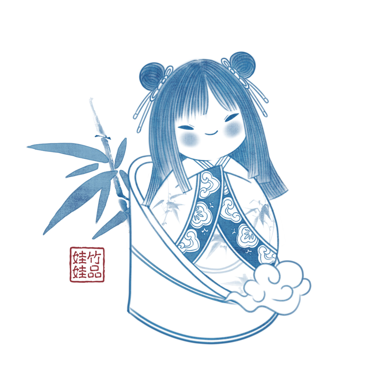 來自古代穿越到現代的竹品娃娃:青花瓷系列