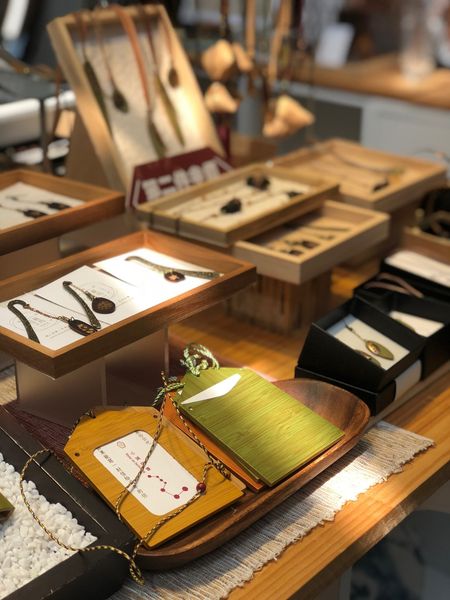 祈願の竹のリーフのストラップは、青竹染めの処理をし、竹本来の材質を生かして作られています。このシリーズ商品は、細い竹の上に星への願いごとを書き記した短冊を吊り下げる日本の七夕の習慣をコンセプトにしています。「祈願竹・プレート」にはMRTのEasyCardやICカードキーを収納することができます。